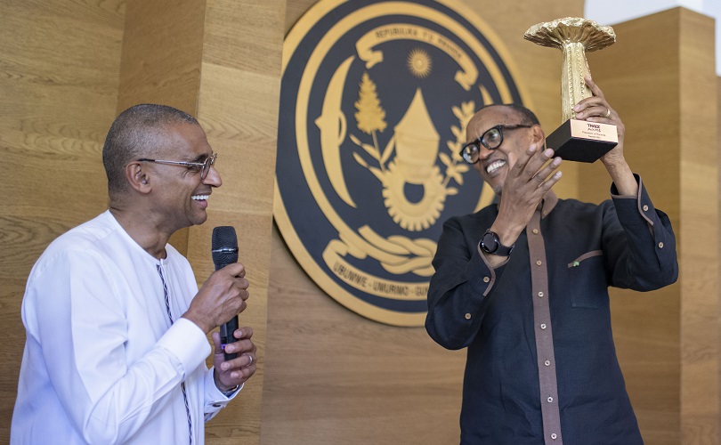 Umuyobozi wa Trace Group, Olivier yashyikirije Perezida Kagame igikombe cy'indashyikirwa