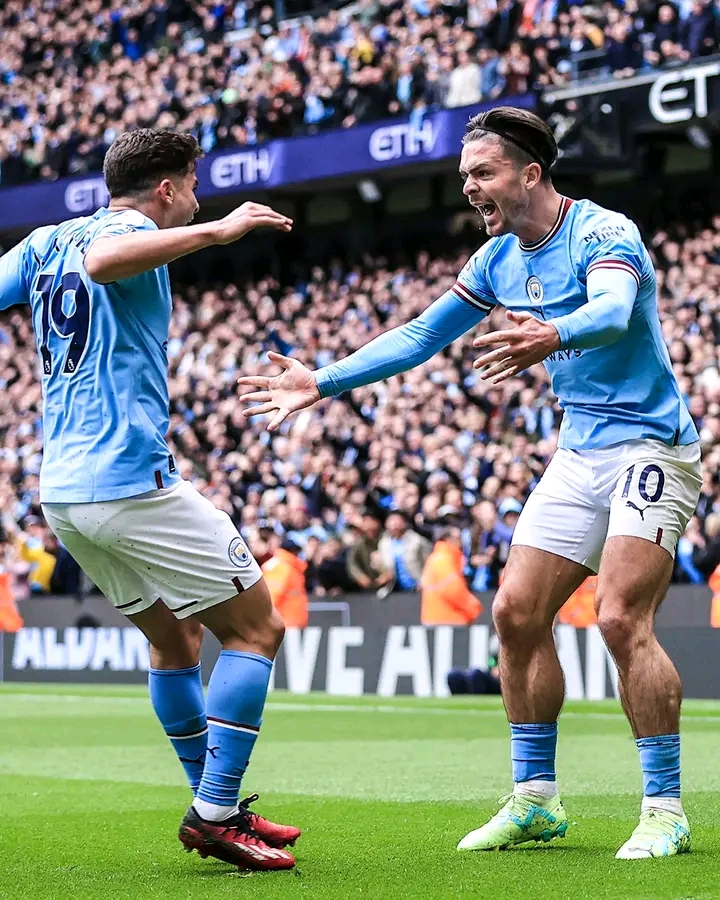 Ku munota wa 28 Mahrez yahaye umupira mwiza Ilkay Gündogan nawe awushyira kwa Jack Grealish arangije nawe awugurura mu rubuga rw'amahina usanga Julian Alvarez ahita atsinda igitego cyo kwishyura.