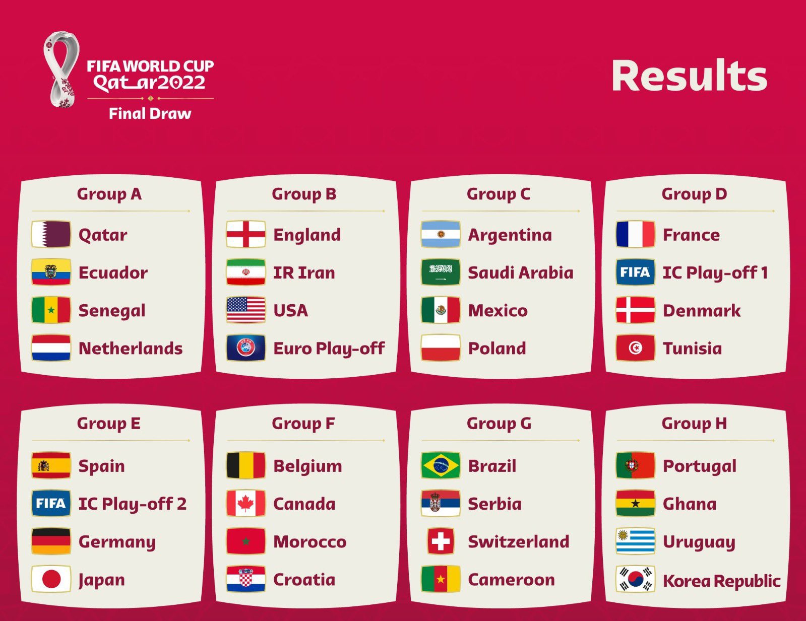 Ku mugoroba wo kuri uyu wa Gatanu tariki ya 1 Mata 2022, habaye tombola y'uburyo amakipe azakina mu matsinda y'igikombe cy'Isi kizabera muri Qatar mu mpera z'uyu mwaka.