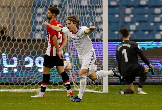 Real Madrid yatangiye umukino iri hejuru, ariko Unai Simon akomeza kuba ibamba akuramo imikino yari yabazwe. Ku munota wa 38, Luke Modric yaje gufungura amazamu, ndetse igice cya mbere kirangira Real Madrid iyoboye umukino.