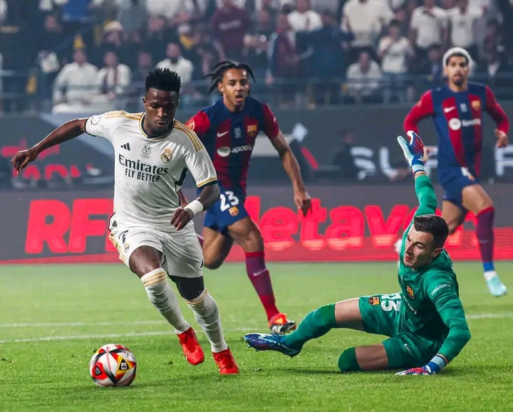 Nyuma yo gutsindwa ibitego 2 byihuse, FC Barcelona yatangiye kureba uko yakwishyura maze ku munota wa 33 Roberto Lewandowski yishyuramo kimwe ariko bidatinze nyuma y'iminota 6 gusa Vinicius Junior atsinda icya 3 kuri penariti.
