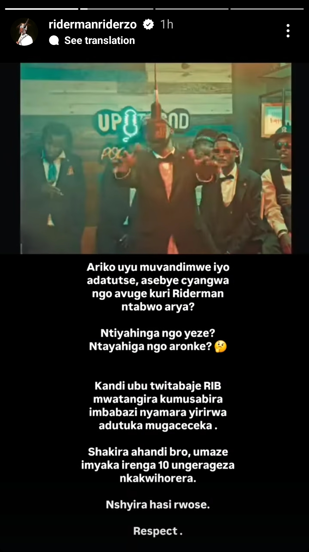 Ni amagambo atakiriwe neza na Riderman, kuko mu butumwa bwe bwo kuri Instagram, yagaragaje ko yatunguwe n'ibyakozwe na mugenzi we.