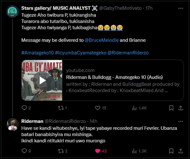 yibagisha inda nk’uko byavuzwe mu minsi ishizeKANDA HANO WUMVE INDIRIMBO 'AMATEGEKO 10' YA BULL DOGG NA RIDERMAN