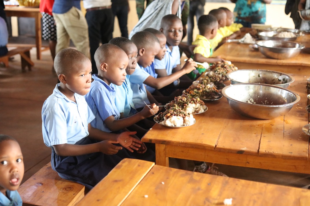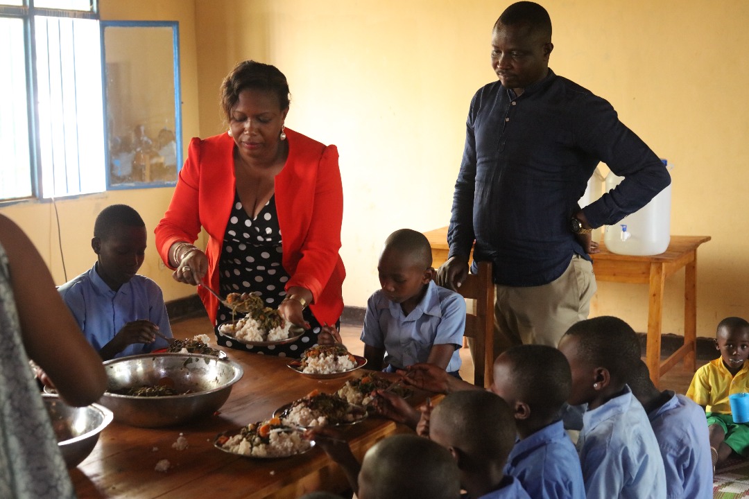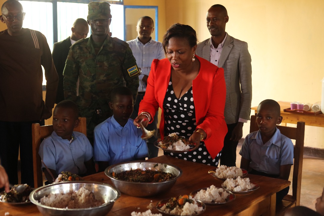Ati: "Ababyeyi twishimiye ko abana bose barira ku ishuri kandi bibafasha kwiga neza ,Njye mbona nta mwana wava mu ishuri kubera ko mbere wababazaga uko harya ku ishuri ugasanga batararyaga ibiryo bihagije. Uyu munsi iyo ubajije niba abana harya, barakubwira ko bishimiye uko barya".