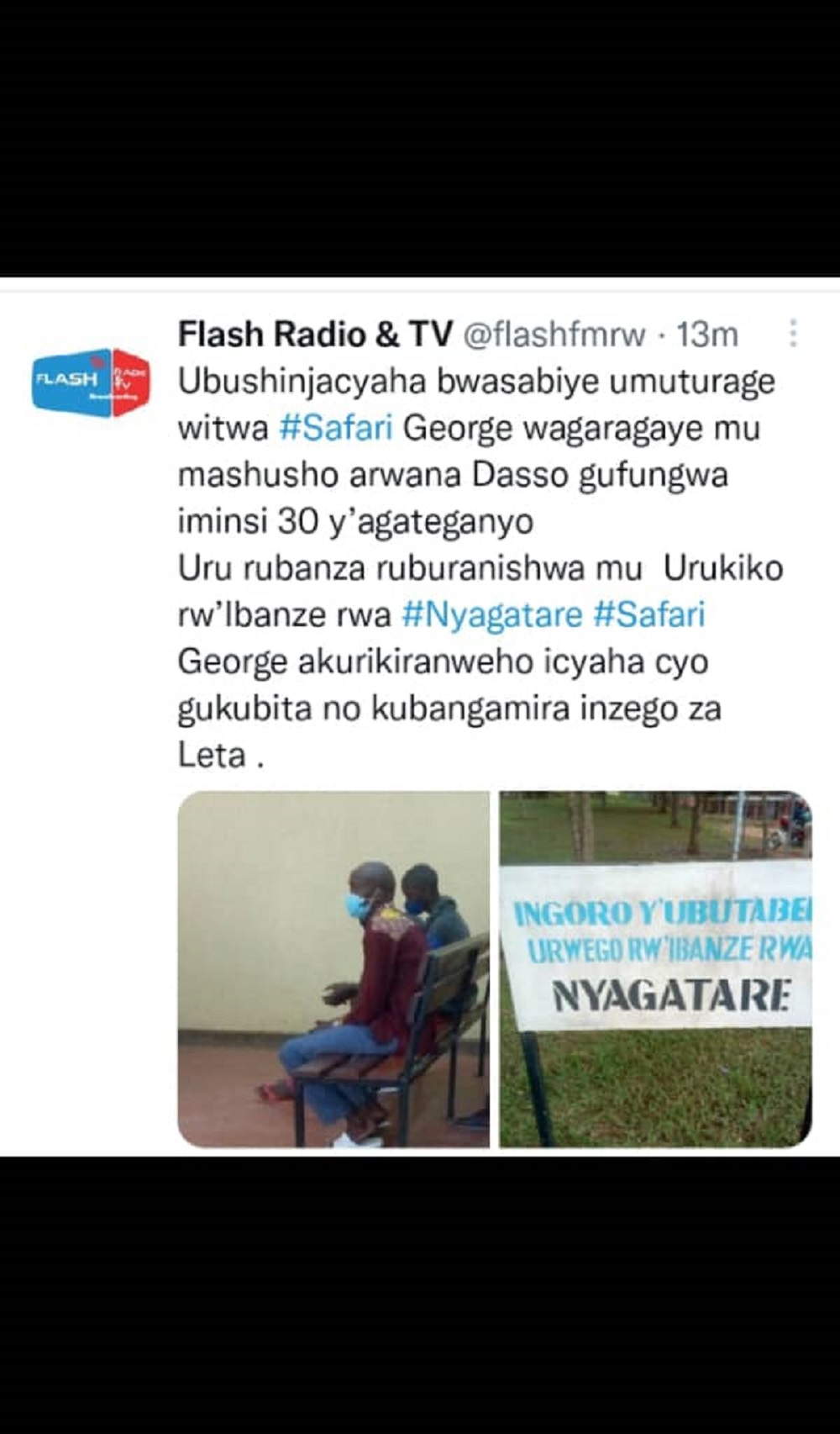Flash FM yatangaje ko ubushinjacyaha bwo mu Rukiko rw'Ibanze rwa Nyagatare, bwasabiye umuturage witwa Safari George ‘Nyubaha’, wagaragaye mu mashusho arwana na Dasso akayinigira hasi, gufungwa iminsi 30 y’agateganyo.