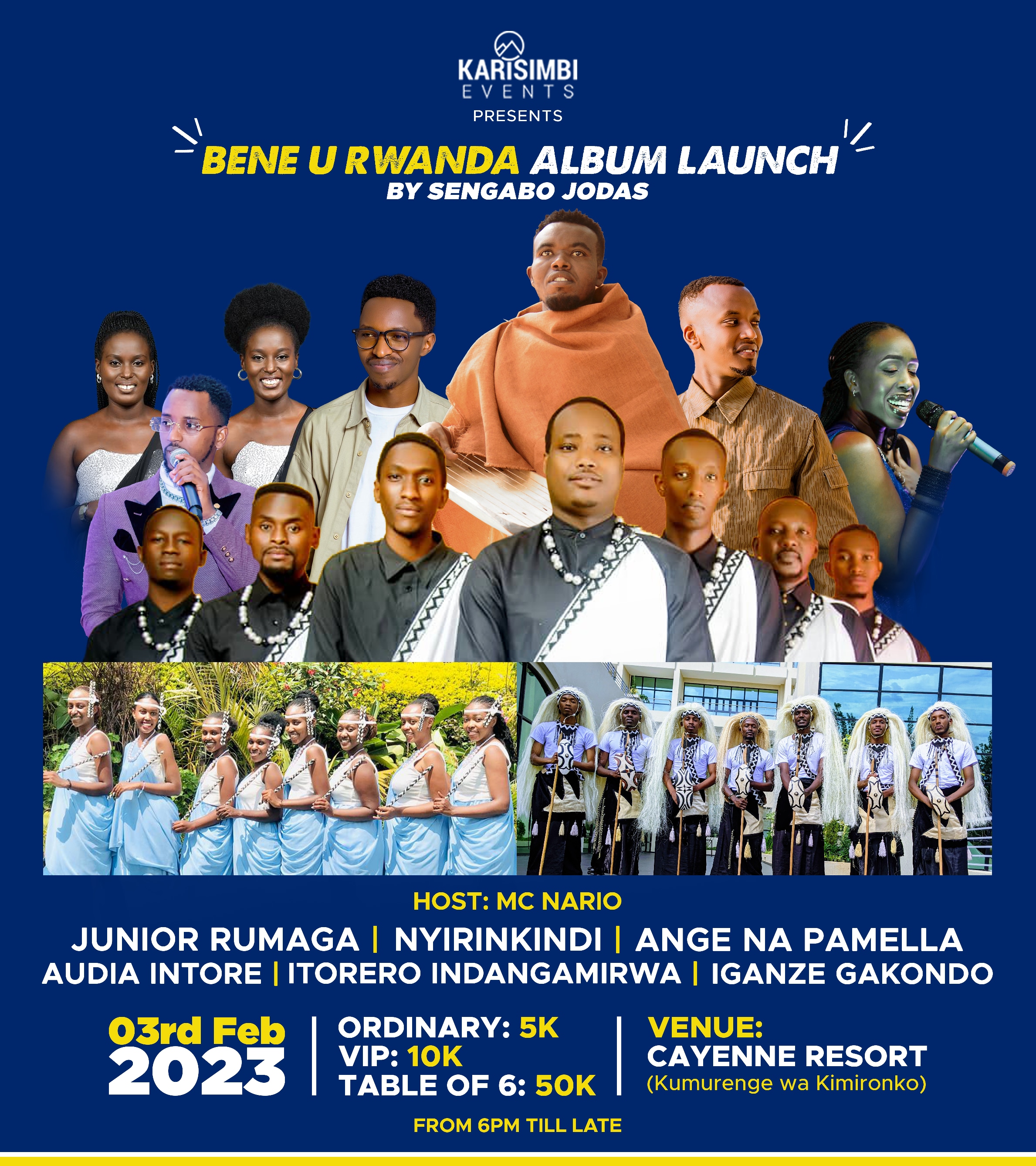 Kwinjira ni 5,000 Frw mu myanya isanzwe, 10,000 Frw muri VIP na 50,000 Frw ku meza y'abantu batandatu.