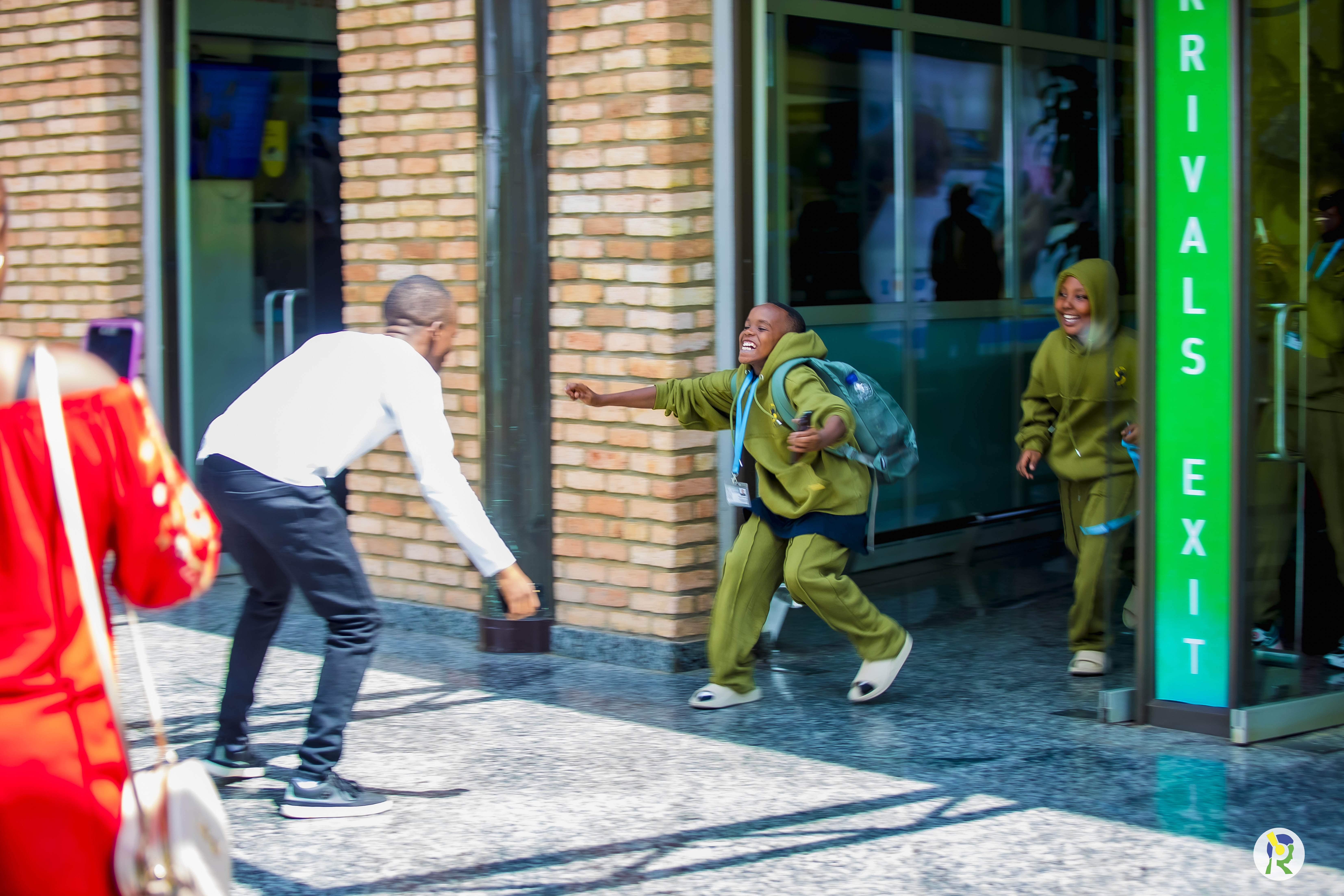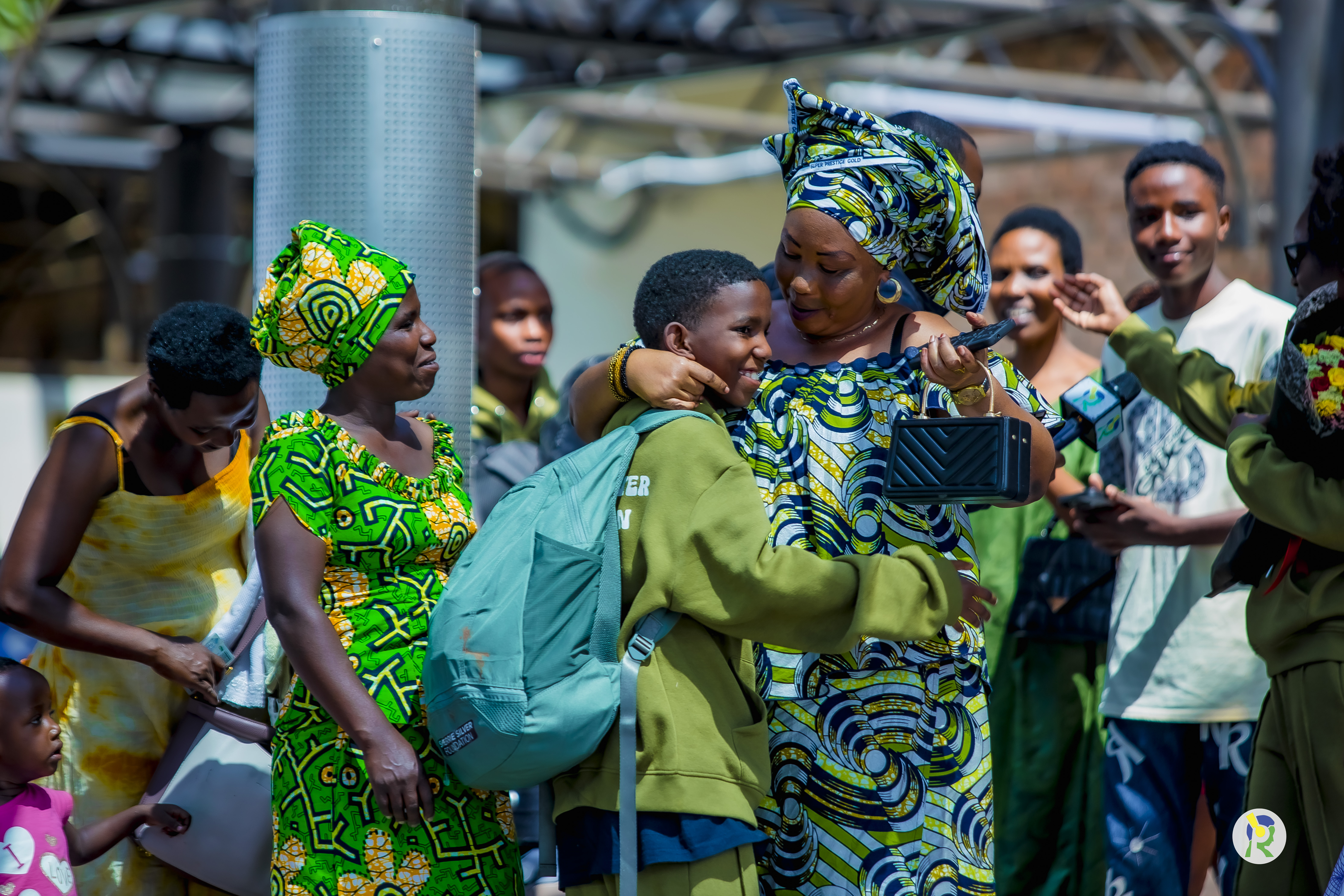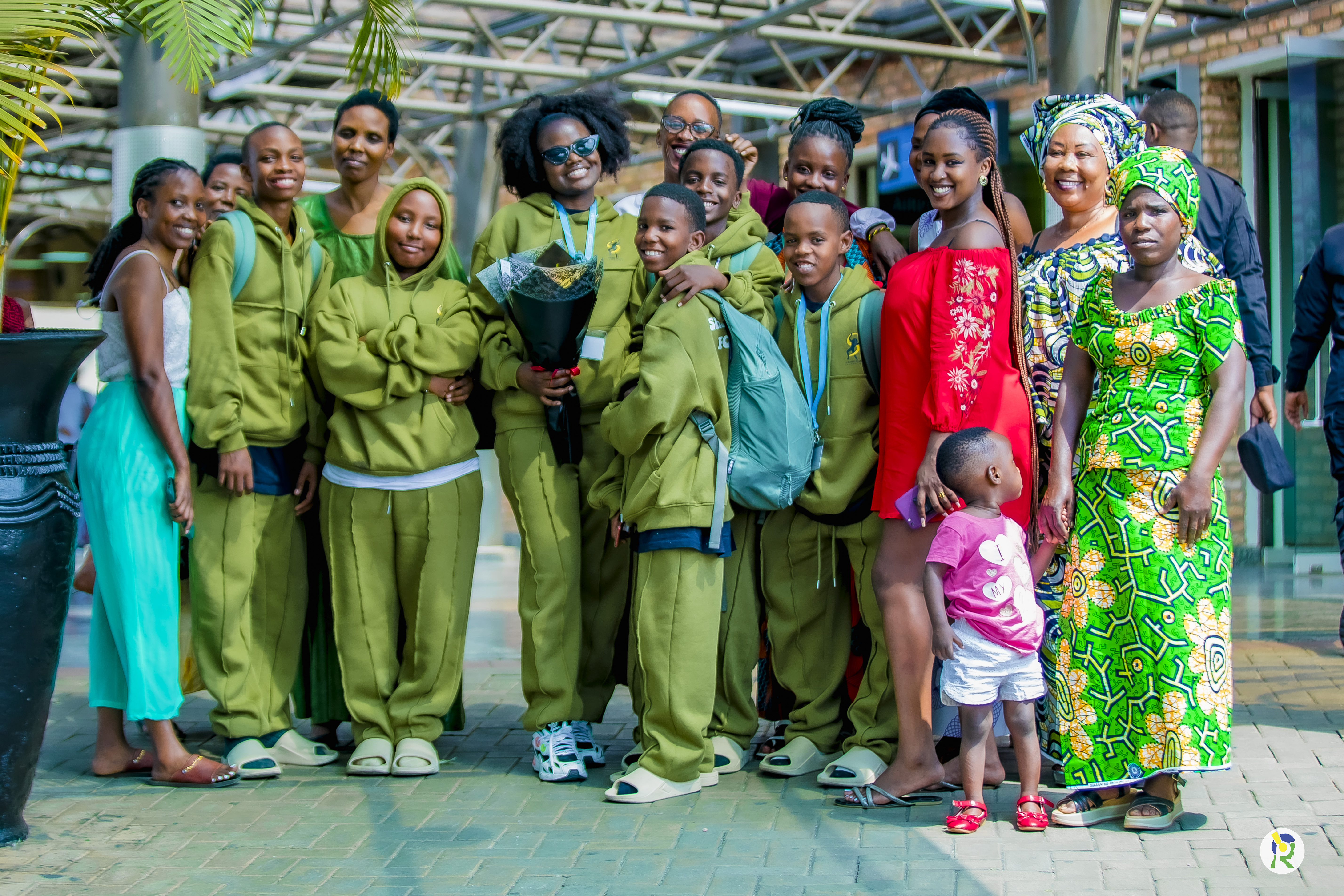 Akanyamuneza kari kose ku bana n'ababyeyi babo bari baje kubakira ku kibuga cy'indege