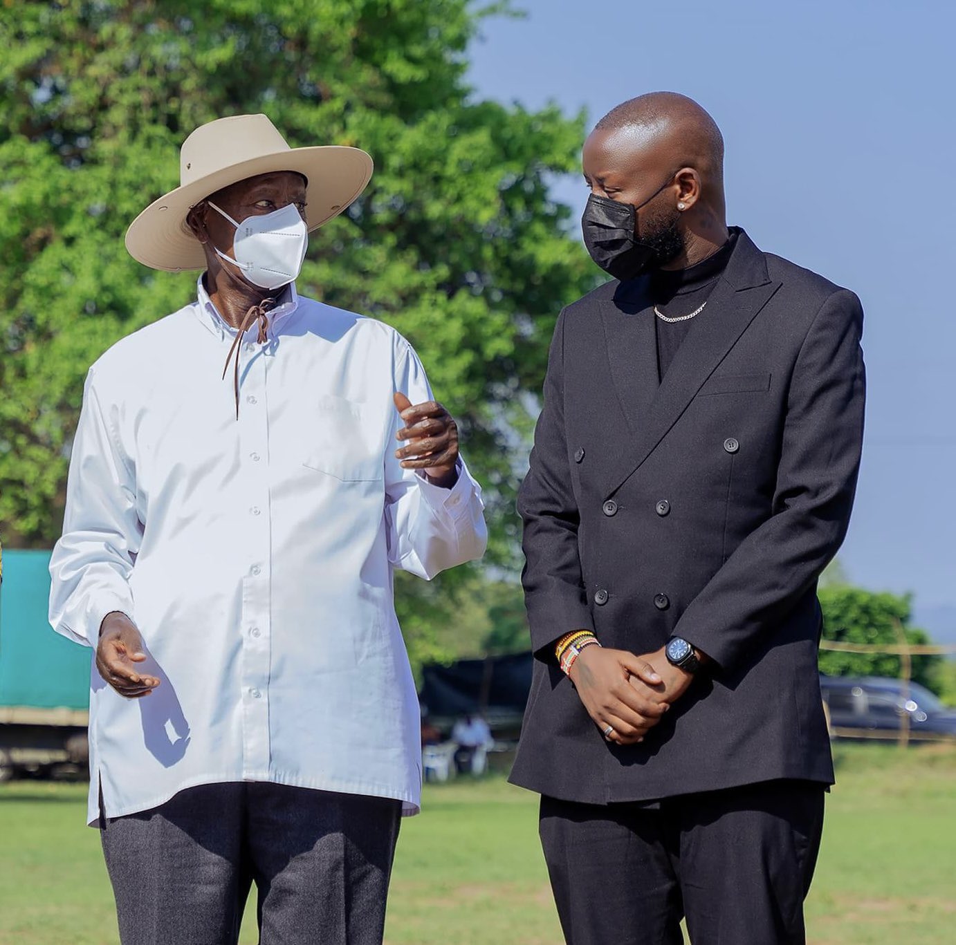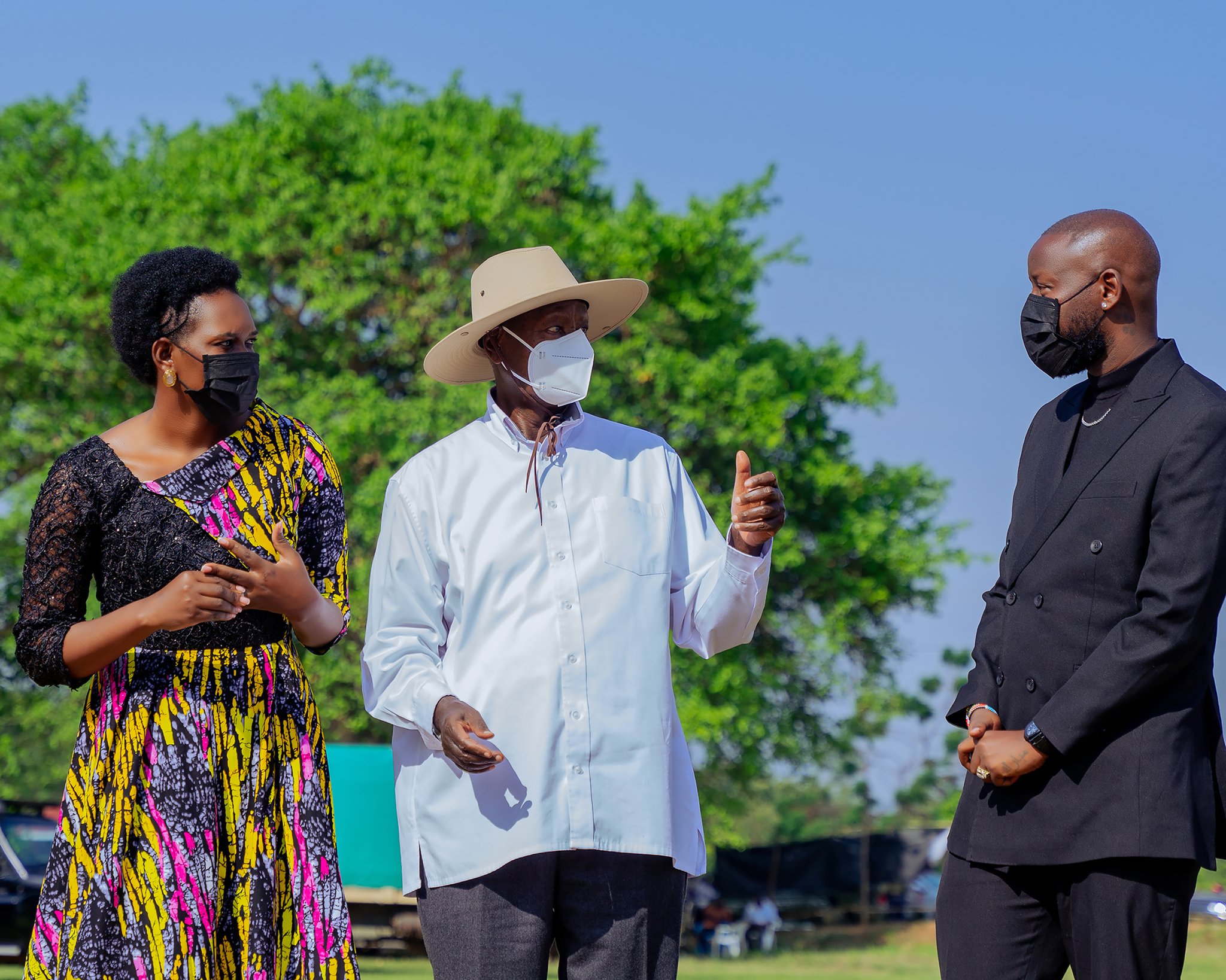 Perezida Museveni ubwo yari kumwe na Minisitiri Nyamutooro na Eddy Kenzo yagize Umujyanama we