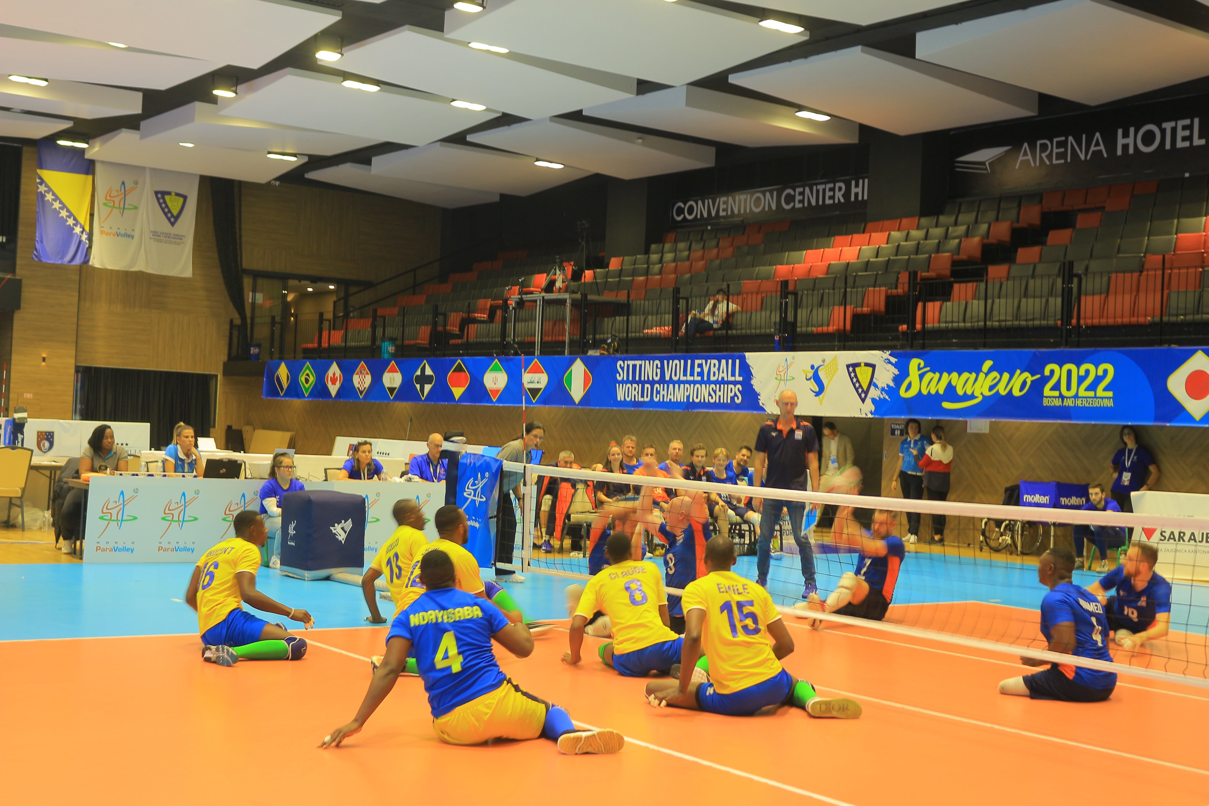Kuri uyu wa Gatandatu ni bwo mu gihugu cya Bosnie Herzegovine hakomezaga shampiyona y'Isi mu mikino y'abafite ubumuga. Amakipe abiri ahagarariye u Rwanda yose yamanutse mu kibuga, aho ikipe y'igihugu mu bagabo ariyo yabanje gukina gusa biyigendekera nabi kuko yatsinzwe na n'u Buhorandi amaseti 3 kuri 2.