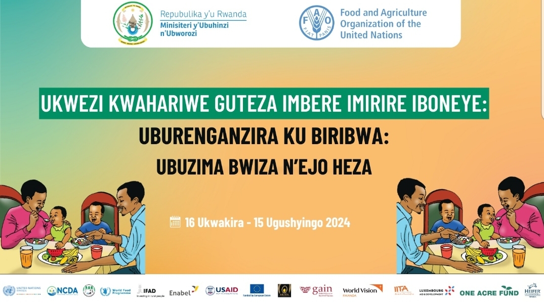 Ni muri urwo rwego Minisiteri y'Ubuhinzi n'Ubworozi {MINAGRI} n'Ishami ry'Umuryango w'Abibumbye rishinzwe Ubuhinzi n'Ibiribwa (FAO) n'abandi bafatanyabikorwa batandukanye, basaba abanyarwanda ko indyo yuzuye yagirwa umuco mu miryango.