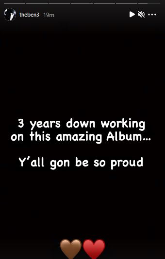 Muri ubwo butumwa kandi The Ben umaze iminsi ateguza abakunzi be umuzingo mushya (Album, yavuze ikintu bwa mbere abantu batari bazi, avuga ko Album agiye gusohora amaze imyaka itatu ayikoraho ndetse ko abantu bazanyurwa nayo.