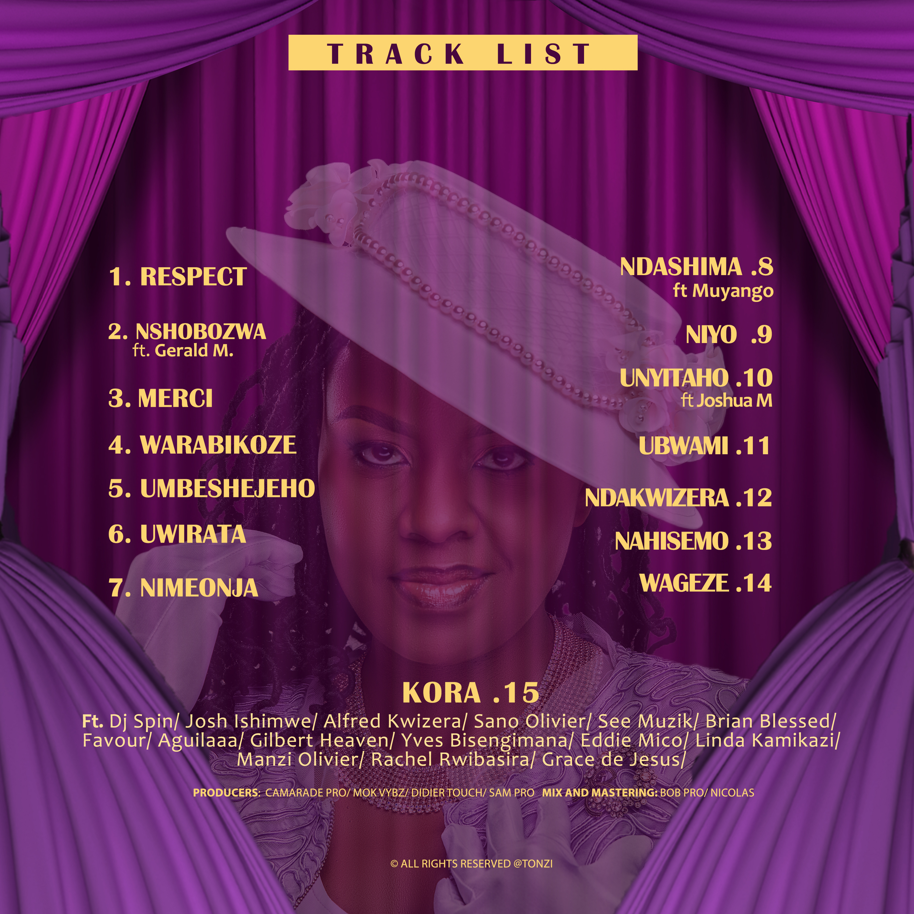 Ni Album iriho indirimbo 15 ari zo: "Respect", "Nshobozwa" Ft Gerald M; "Merci", "Warabikoze", "Umbeshejeho", "Uwirata", "Nimeonja", "Ndashima" ft Muyango, "Niyo", "Ubwami", "Ndakwizera", "Nahisemo", "Wageze" na "Kora" yakoranye n'bahanzi 15.