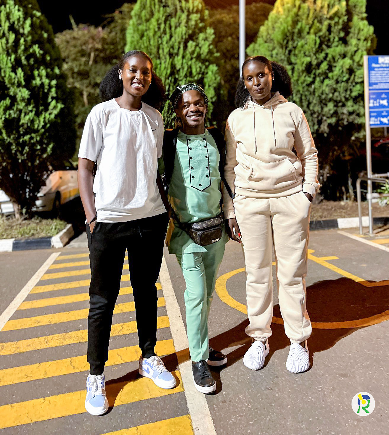 Ku kibuga cy’indege mpuzamahanga cya Kigali aho bahagurukiye, Ange, Pamela na Jules Sentore, bari bafite akanyamuneza ko kuba bagiye gusangiza umuco gakondo abo mu Rwanda rw’iriya.