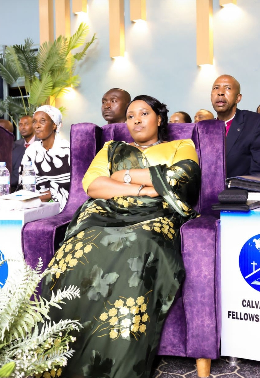 Yongeyeho ati "Hanyuma azahabwa icyubahiro kuko akorera Imana". Yahise amwambika furari, umusaraba ndetse n'impeta isanzwe yambarwa n'abashyingiranywe, ati "Uyu munsi ushyingiwe n'Itorero Calvary n'umubiri wa Kristo wose. Iyi ni impeta y'ubu Bushop n'Ubushumba".