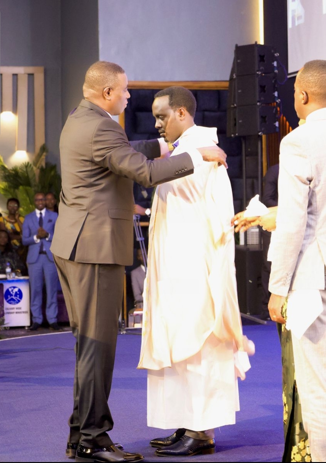 Nyuma yo kumwambika igishura cy'umweru, Apotre Gitwaza yagize ati "Umwambaro w'umweru ni igishura cyo gukiranuka, uzakiranuke mu byo uvuga, mu byo ukora byose mu murimo w'Imana uhawe".