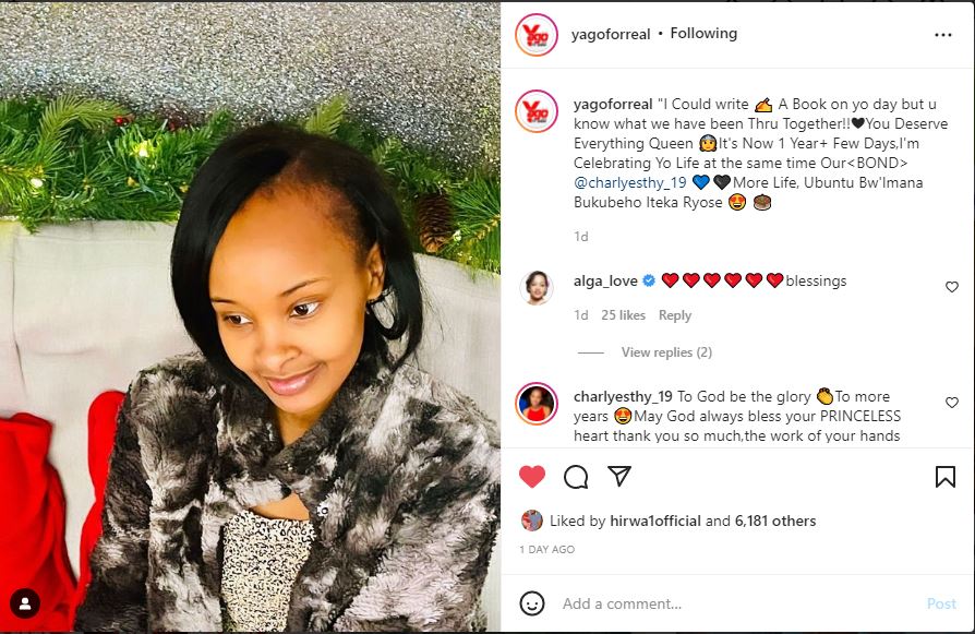 byose mwamikazi, ubaye umwaka wose n’iminsi micye, ndishimira ubuzima bwawe kandi ni igihango cyacu, Charly ramba ubuntu