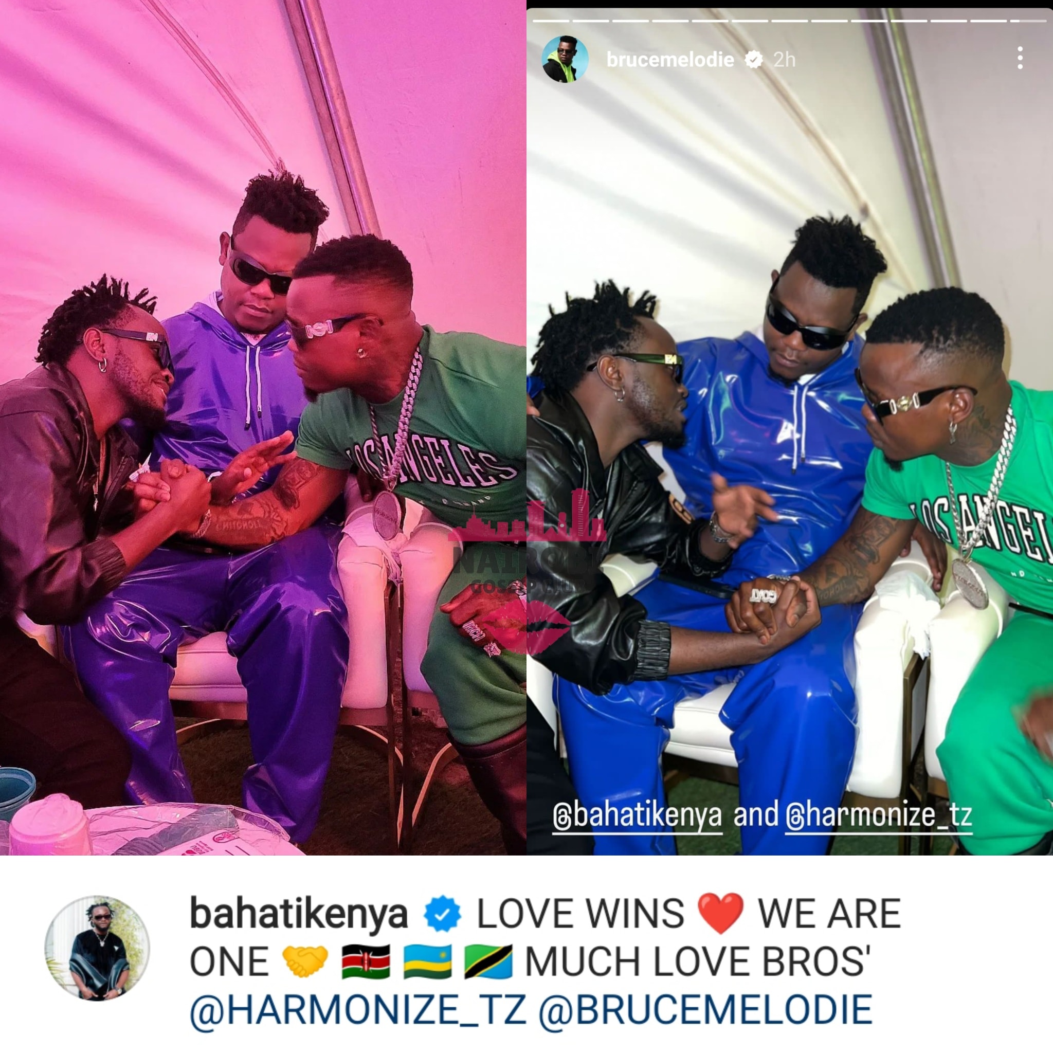 Bruce Melodie yunze Harmonize na Bahati nyuma y’uko bahuriye mu iserukiramuco rya Eddy Kenzo muri Uganda