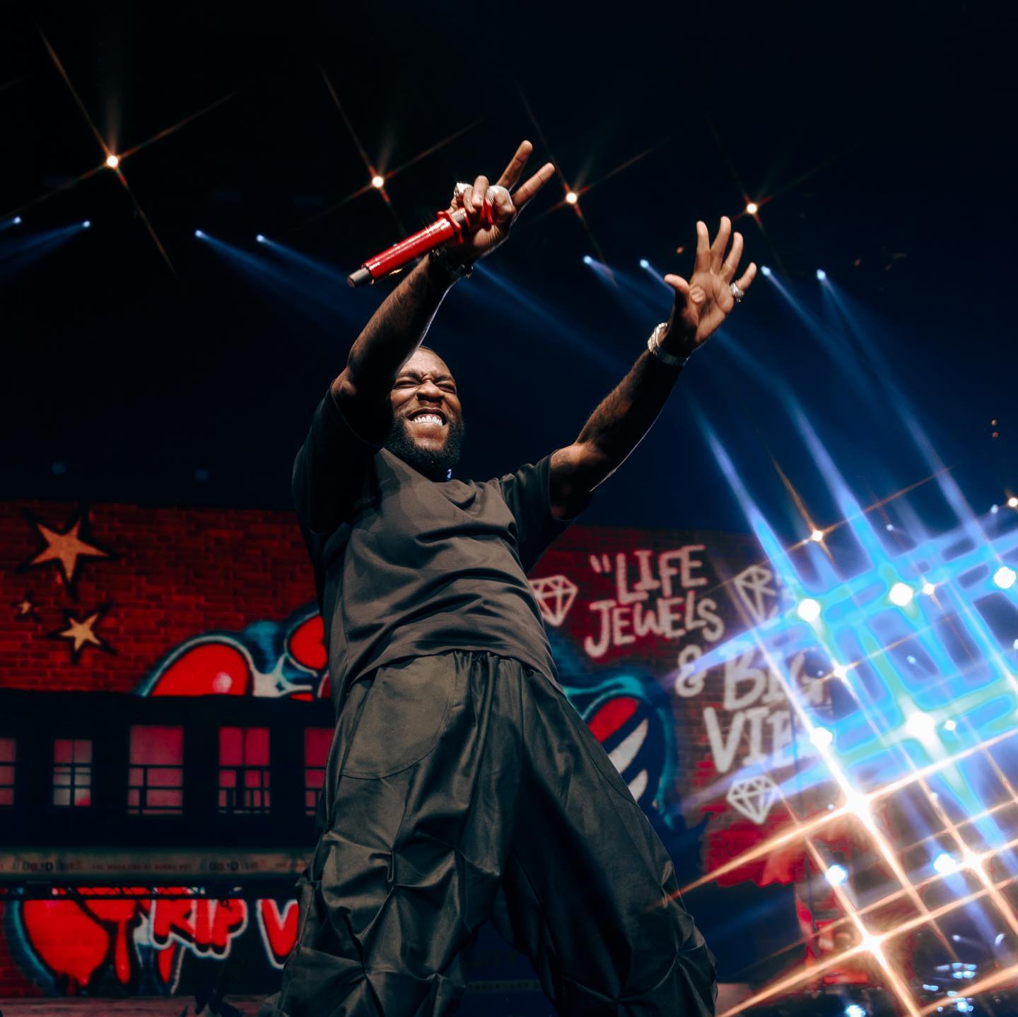 Yaririmbye mu buryo bwa Live afashwa n'abaririmbyi be. Burna Boy yakuyemo umupira aririmba isokoreki igaragara. Ati "Ndabashimira cyane bavandimwe. Nizere ko muri kumwe nanjye".