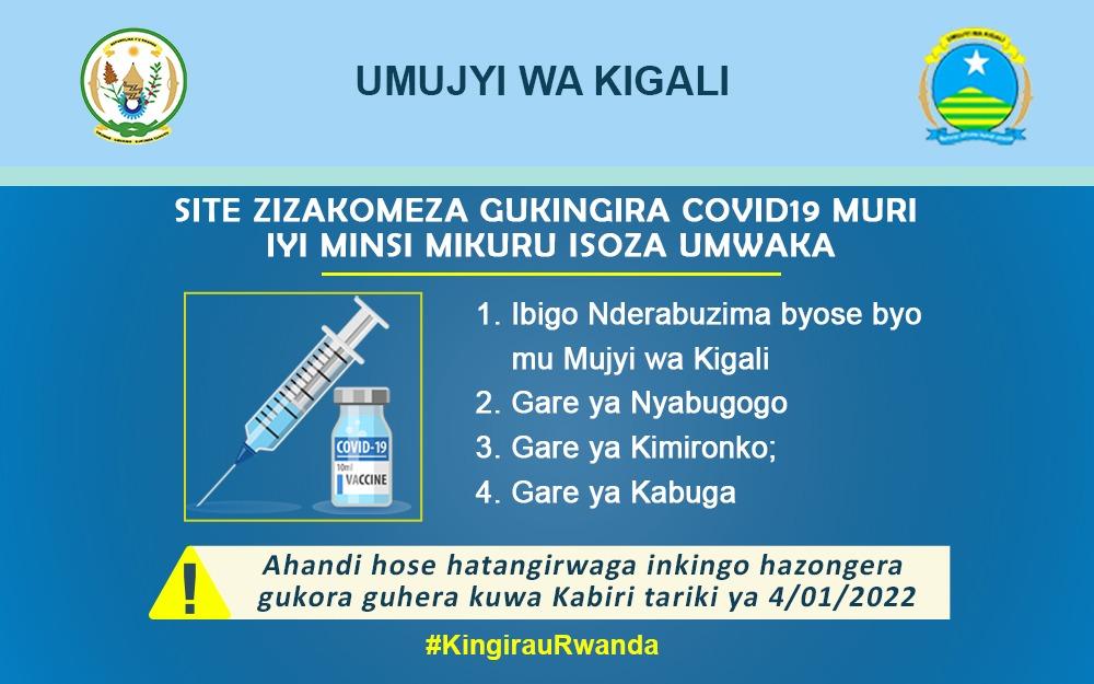 Ahandi hose hatavuzwe haruguru hari hasanzwe hatangirwa inkingo hazongera gukora guhera kuwa kabiri tariki 4 Mutarama 2022.