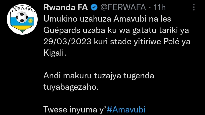 Binyuze ku mbuga nkoranyambaga z'ishyirahamwe ry'umupira w'amaguru mu Rwanda, FERWAFA, byamaze kwemezwa ko uyu mukino wigijwe inyuma umunsi umwe ukazakinwa tariki 29 Werurwe 2023 kuri sitade ya Kigali Pele Stadium iherereye i Nyamirambo.