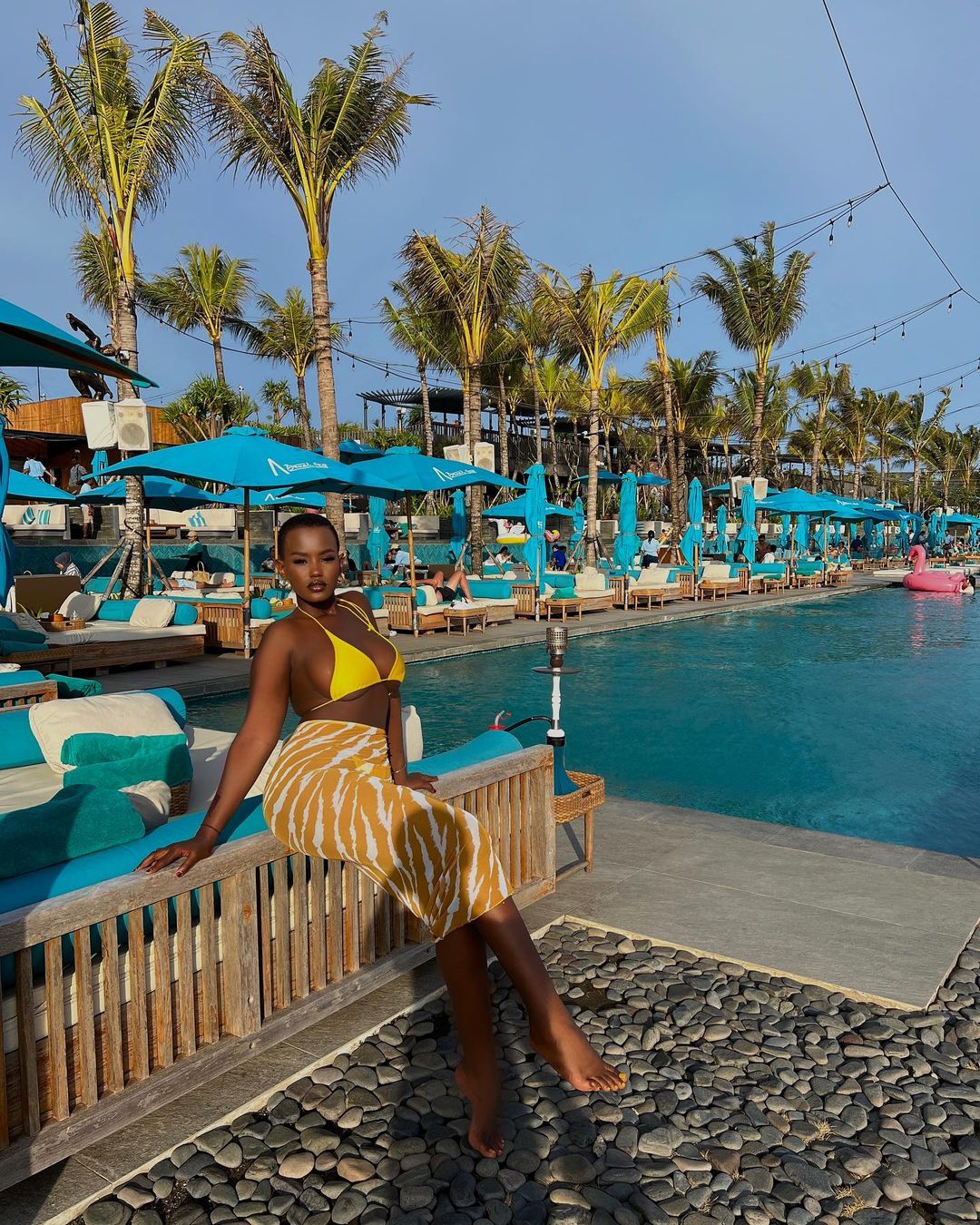Isimbi Noeline ukina filime z'urukozasoni mu mwambaro wo ku mazi uzwi nka Bikini