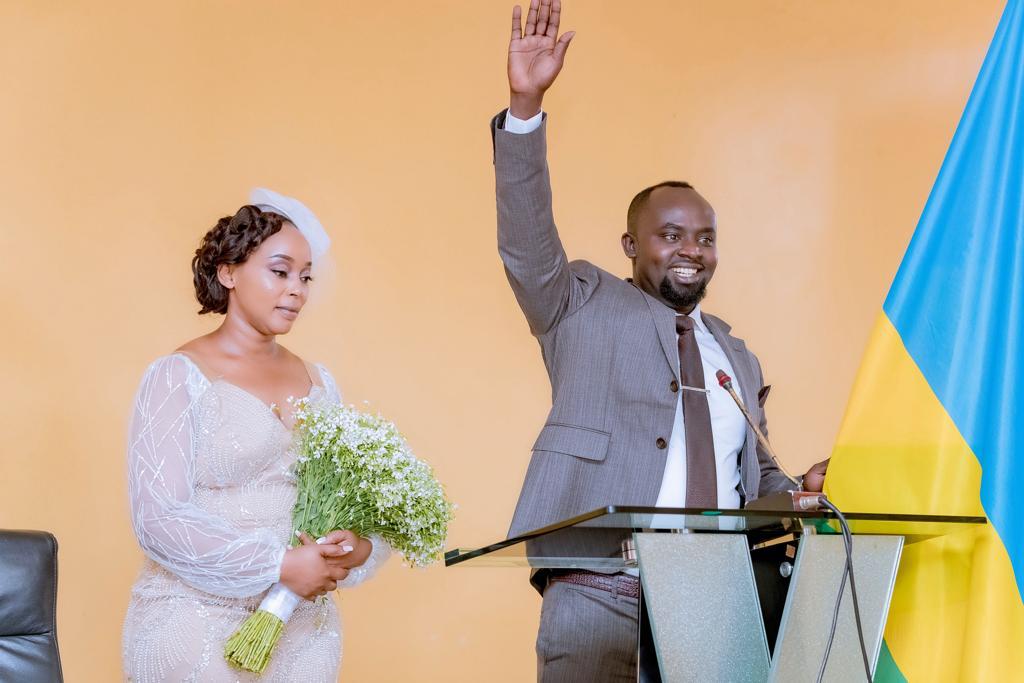 Brian Blessed na Dinah Uwera basezeranye imbere y'Imana nyuma y'amasaha macye basezeranye imbere y'amategeko ya Leta y'u Rwanda, mu muhango wabaye Kane tariki 05 Ukwakira 2023 mu muhango wabereye ku Murenge wa Remera mu Karere ka Gasabo mu Mujyi wa Kigali.