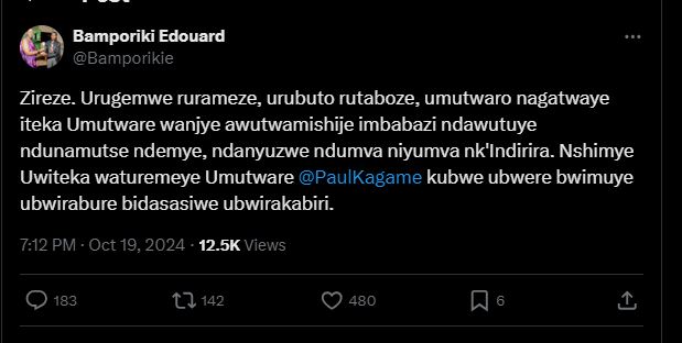 Mu butumwa yanyujije ku rubuga rwa,