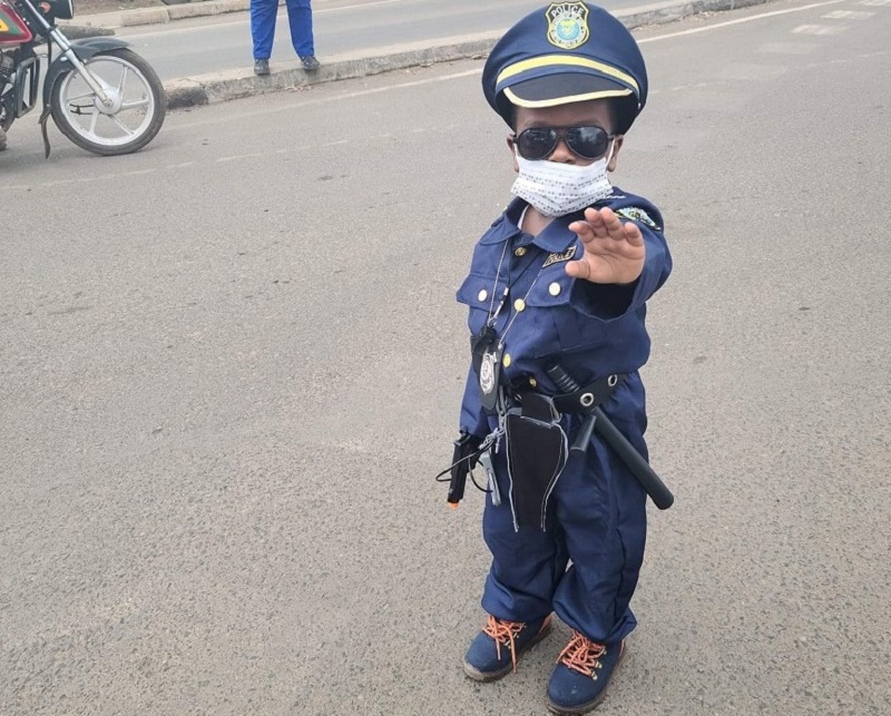 Amafoto y'umwana w'umuhungu muto yambaye imyenda imeze nk'iya aba-polisi, afite imbunda, inkoni y'abapolisi n'ingofero , yewe atibagiwe n'amapingu. Uyu mwana yakwirakwiriye ku mbuga nkoranyambaga bibaza uko byagenze ngo ahabwe akazi ariko nyamara si akazi ni kumwe abana baba abadasanzwe.