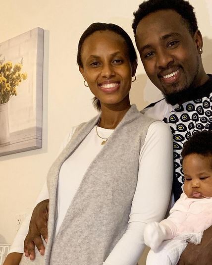 Alpha Rwirangira n'umugore we Umuziranenge Liliane n'umwana wabo