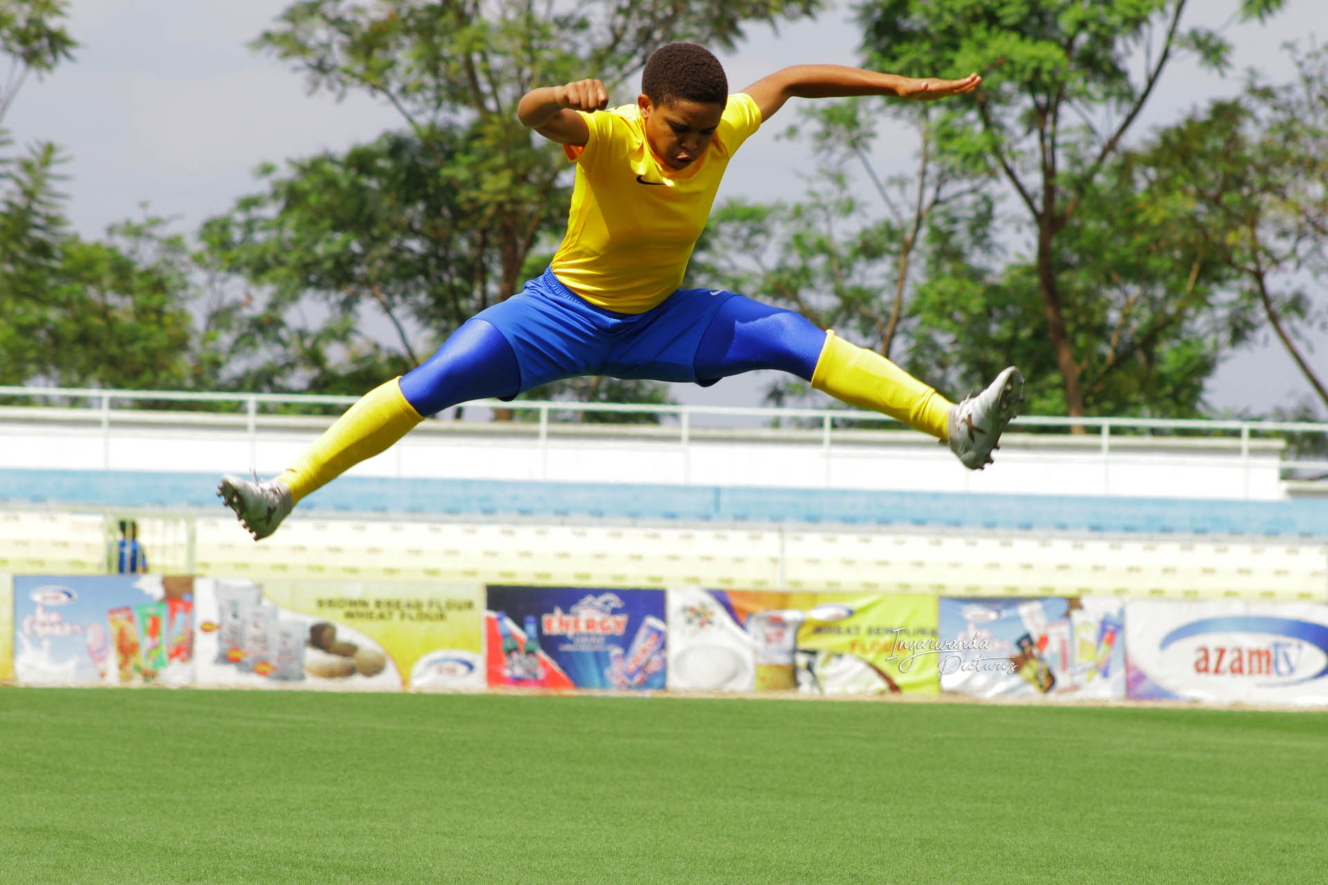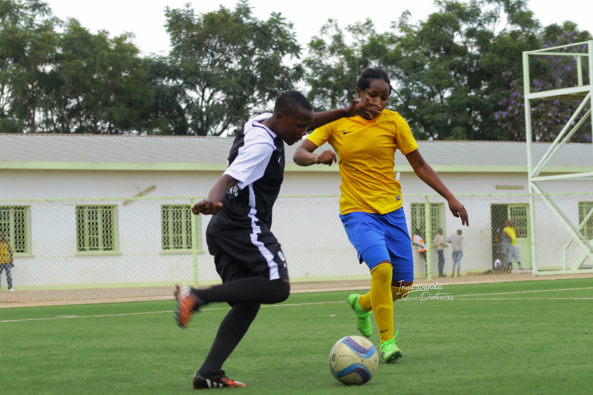 Kanyamihigo Callixte akaraga umupira imbere ya Nyirahabimana Anne Marie