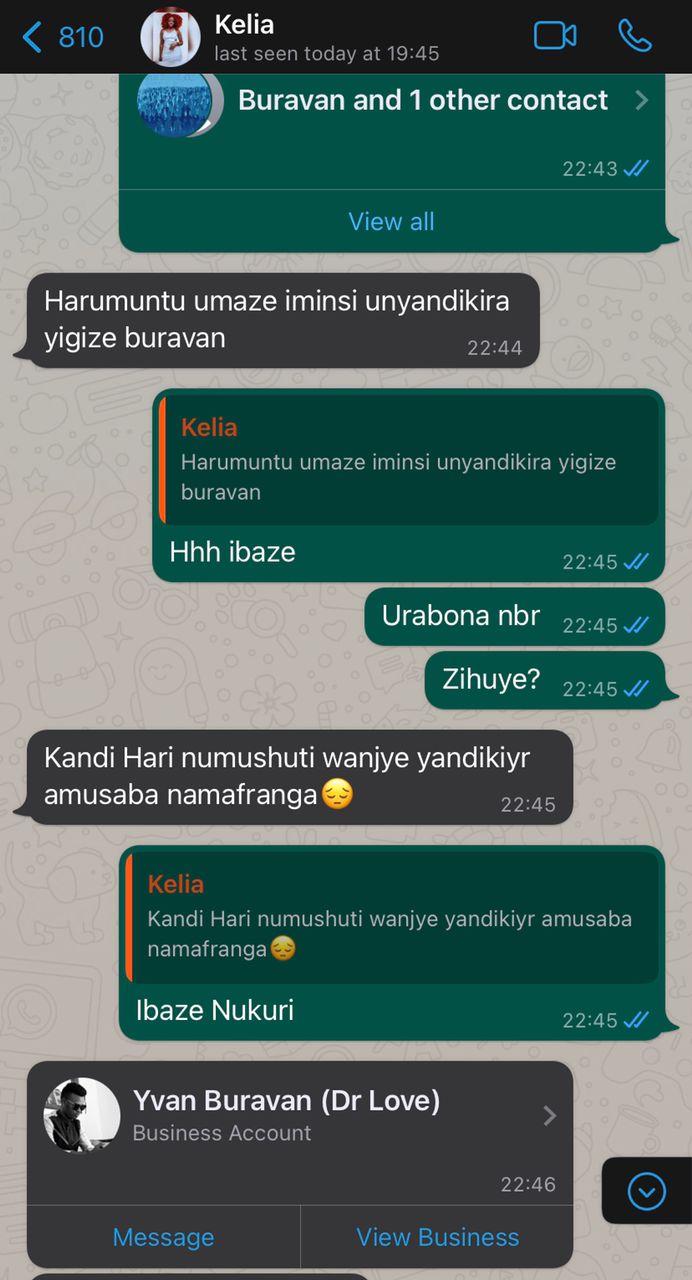 Ku mugoroba washize nahawe amakuru n’umukobwa witwa Kellia, uyu akaba ari n’umuhanzikazi uherutse gusohora indirimbo yitwa "Mon Bebe", asaba ko namuha numero ya Yvan Buravan.