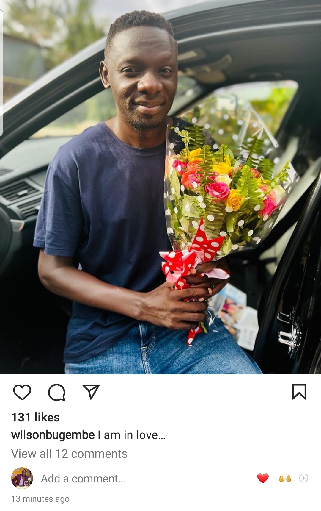 Kuri uyu wa Gatatu tariki 19 Mutarama 2022 mu minota micye ishize, Pastor Wilson Bugembe yatangarije abakunzi be ko ari mu rukundo. Ni ubutumwa yanyujije ku rukuta rwe rwa Instagram munsi y'ifoto ye imugaragaza yicaye mu modoka afite ururabo mu ntoki. Munsi y'iyi foto yanditse ati "Ndi mu rukundo". Abakunzi be benshi barimo n'ibyamamare muri Uganda nka Judith Heard na Lydia Jazmine banejejwe cyane n'iyi nkuru nziza yabatangarije.