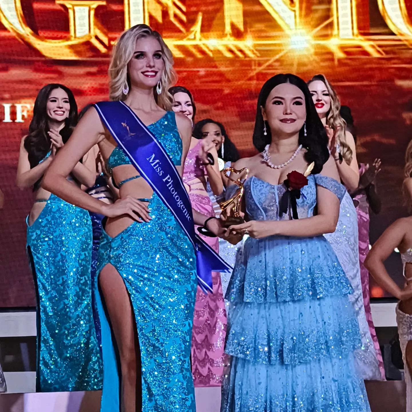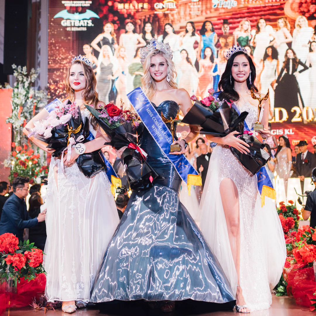 Shelby Ann [Uri hagati] wo muri Amerika niwe wegukanye ikamba rya Miss Cosmo World