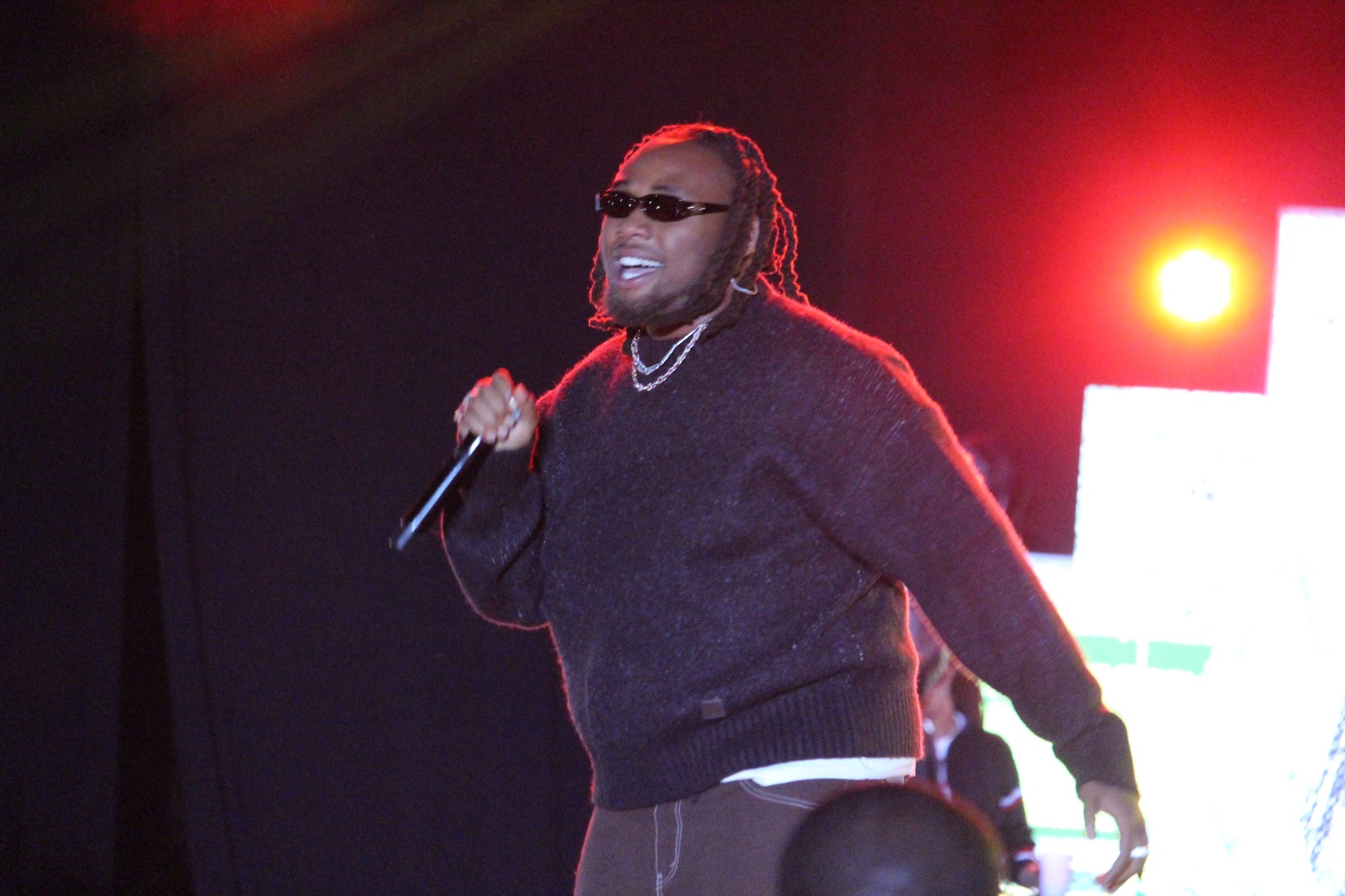 Ageze ku rubyiniro yaririmbye 'microphone' idacanye, umwe mu ikipe ye azakumufasha arayicana.