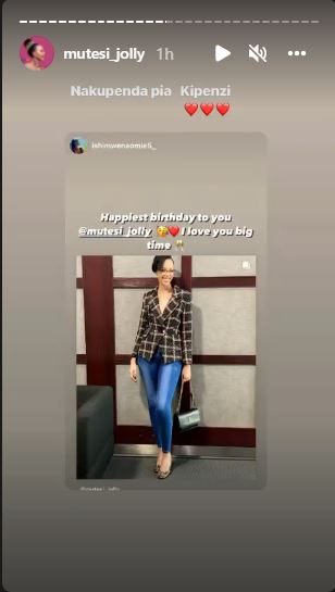 Iradukunda Liliane ni umwe mu bifurije isabukuru nziza Mutesi Jolly amwifuriza imigisha mu rugendo rw'ubuzima