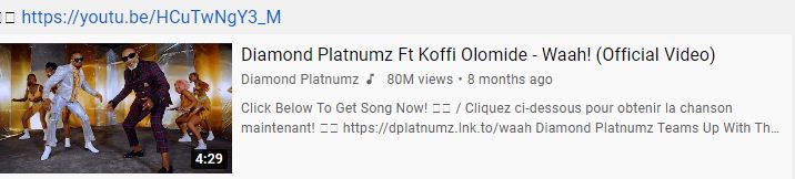 Ibi bivuze ko ariya ma miliyoni ari umusaruro w’iyi ndirimbo imwe ‘Waah’, tutabariyemo ayavuye ku zindi ndirimbo ze ndetse tutanabariyemo ayo yakuye ku zindi mbuga zicuruza umuziki nka Boomplay, Spotify, audiomarka n’ahandi hanyuranye.