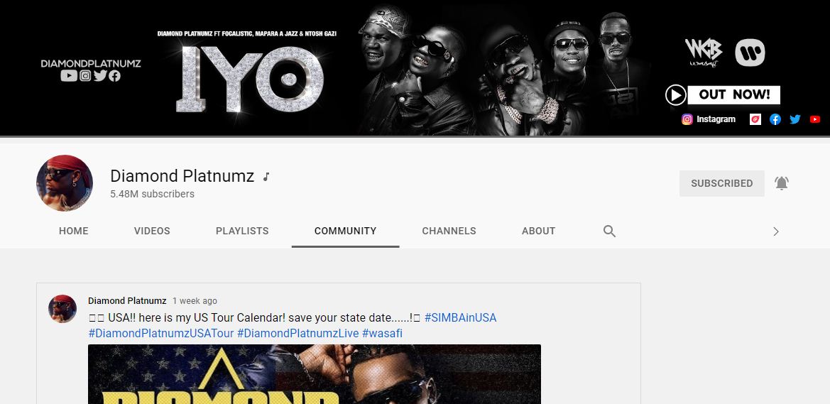 Kugeza none mu bahanzi bose, Diamond niwe ufite aba ‘Subscribers’ benshi muri Africa n'umusaruro rusange mwiza w’abarenga Miliyari 1.48